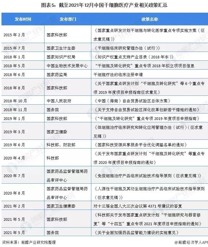 進入“十四五”時期以來,政策紅利繼續(xù)加持。2021年初國家重點研發(fā)計劃“十四五”總體布局形成,將“干細胞研究與器官修復”納入“十四五”第一批啟動國家研發(fā)計劃的6個重點專項,持續(xù)促進干細胞研究的規(guī)范和臨床應用的轉(zhuǎn)化。