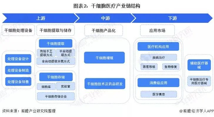 干細胞治療指的是用干細胞衍生的組織或器官替代病變的組織和器官,應用于脊髓損傷、糖尿病、缺血性心臟疾病等傳統(tǒng)醫(yī)學方法無法醫(yī)治的疾病。而干細胞醫(yī)療產(chǎn)業(yè)是包括干細胞提取、干細胞存儲、干細胞產(chǎn)品研發(fā)和干細胞治療在內(nèi)的整個產(chǎn)業(yè)。
