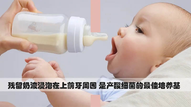 1、寶寶晚上睡覺的時(shí)候,口水分泌的較少,口腔功能活動(dòng)也比較少,口腔的自潔能力就比較差,殘留的奶漬浸泡在上前牙的周圍,就會(huì)為產(chǎn)酸的細(xì)菌提供最佳的培養(yǎng)基。由于我們的奶液當(dāng)中的碳水化合物會(huì)被細(xì)菌分解產(chǎn)酸,進(jìn)而侵蝕牙齒,使牙齒脫礦溶解,形成齲齒。